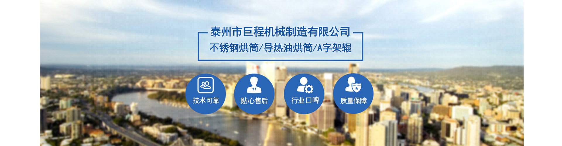泰州市巨程機械制造有限公司 泰州市巨程機械制造有限公司泰州市巨程機械制造有限公司是一個專業(yè)生產不銹鋼烘筒、導熱油烘筒、雙層冷水輥、A字架輥、染整設備等產品的機械公司。我公司注重產品質量,講求企業(yè)信譽。我公司重點在于內部管理,努力提高產品質量,強化全體員工的服務意識,形成了一套我廠的用戶定期回訪制度,積極搜集廣大用戶在使用我廠設備過程中反饋回的各種信息,有針對性的組織人員進行專項攻關